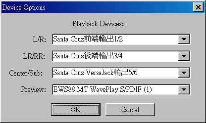 所以在上圖,我是選用了 TerraTec EWS88MT 上的 SPDIF 裝置。本站介紹過的 CardDeluxe 也可以拿來使用。您如果使用的是 SB Live! 娛樂版/白金版、YMF744/754 等具備數位輸出的音效卡,只好放棄囉!不是專業用途的音效裝置還是沒辦法完成這項任務。其實話說回來,我丟什麼 wave 檔給你,你就原封不動的從 SPDIF 輸出,還比較簡單,偏偏一定要過 SRC,化可能成為不可能,唉!