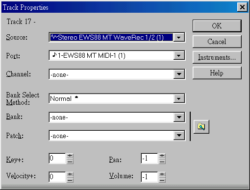 我想到的方法是利用 Cakewalk Pro Audio 9 就有的 wave 錄製功能。首先,我設定一軌型態是 stereo wave,如下圖: