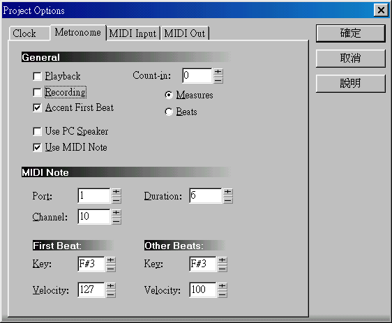 為什麼要這麼做?原本一般 MIDI 錄音會發出節拍器的聲音是用來幫助彈奏者抓穩節奏,但是現在我們是要將 MIDI 檔的內容錄製成 wave 檔,當然不能有這個節拍器的聲音進去。