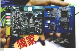 就是右圖啦!這一張照片要感謝網友鄧龍提供,而照片來源是香港 PC Weekly 第 80 期,『獨家』二字不是我加上去的,是原稿就這樣,表示是 PC Weekly 的獨家新聞。從照片中我們可以看出,左邊那一張是 SQ2500 音效卡,右邊那一張藍色的大子卡則是新增的 Motorola DSP56362 所在地,用來提供 EAX 的音場模擬、Dolby Digital 硬體解碼、MP3 解碼、A3D 3.0 的新增功能。兩張合在一起就是新的 SQ3500 音效卡。此 Motorola DSP56362 已知還有 DTS 的硬體解碼功能,但 Aureal 沒有付此版權費用,不會予以開啟使用,這一點本站在二個月前的 11/26 那天有報導過,再幫大家複習一下。^_^