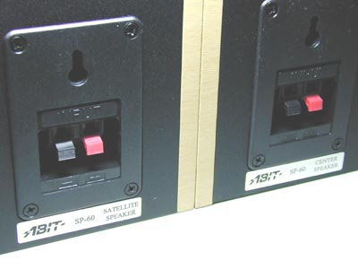 上圖是衛星喇叭的背面。如果不拆下防塵罩來觀看單體,還真無法辨認哪一個才是中央聲道,所幸背後的貼紙也有註明。衛星喇叭採用夾線端子,並且提供好了壁掛孔。
